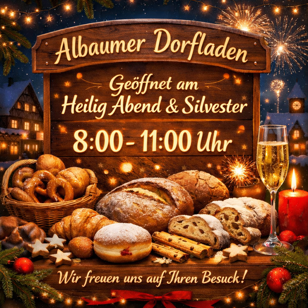 Öffnungszeiten an Heilig Abend und Silvester sind jeweils von 8-11 Uhr!