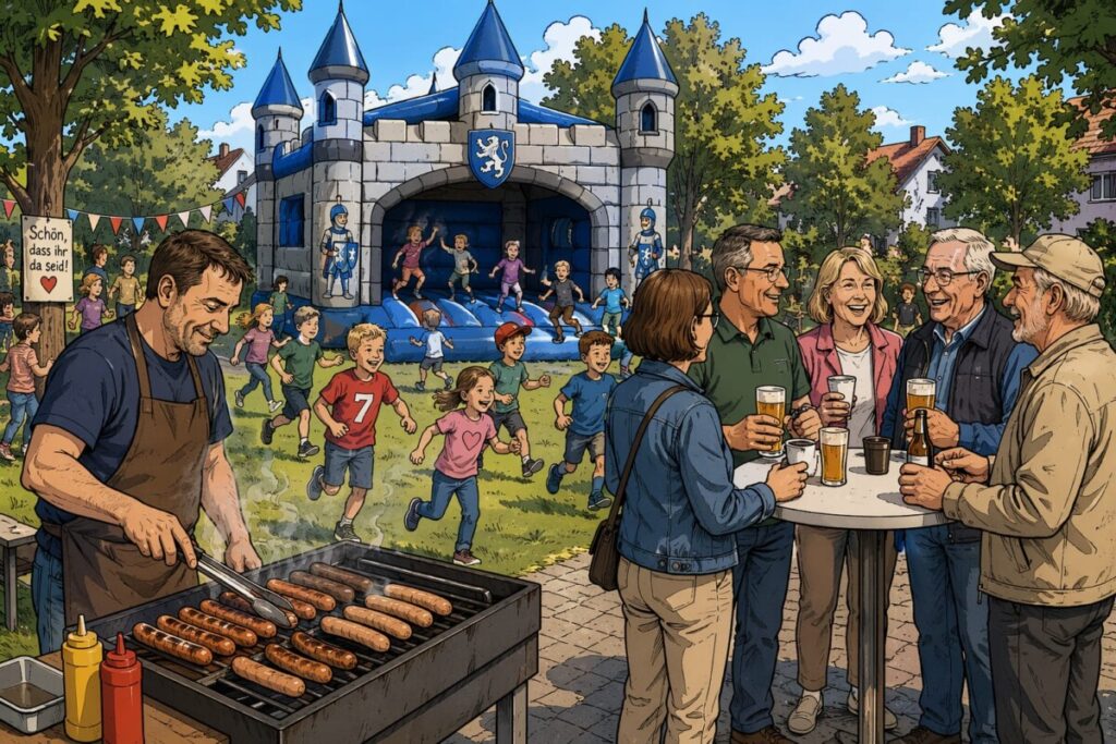 Am Sonntag, den 26.04. wollen wir von 12-17 Uhr am Sportheim der Sportfreunde Albaum mit allen großen und kleinen Albaumerinnen und Albaumern bei Bier, Wurst, Kaffee, Waffeln, Kuchen und Slush-Eis die neue Hüpfburg einweihen. Dazu seid ihr alle herzlich eingeladen und wir würden uns über eine rege Teilnahme freuen!